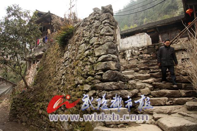 记者看到,堡坎虽然经历了200多年的风吹雨打,但没有一点倾斜,被脚板磨得发光的石梯,仿佛在述说当年的故事。