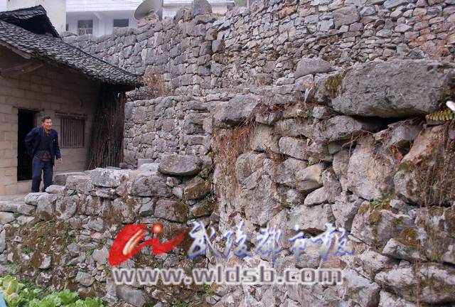童家寨最引人注目的是院落的围墙。记者看到,整个寨子全被石墙围着,只留有一外出的朝门,使寨子成了一座城池。