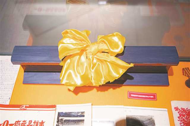 6月19日,大渡口区重钢集团厂情馆,珍藏的用于成渝铁路的38公斤重轨。首席记者 谢智强 摄