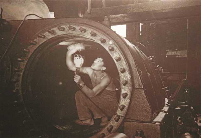 这台为轧制新中国第一根钢轨立下赫赫战功的蒸汽机,是上世纪初洋务运动代表人物张之洞从英国购入,辗转广州、武汉,在抗战初期又西迁至大渡口的。在从宜昌转运至重庆的途中,船队遭轰炸,蒸汽机上的重要部件飞轮曲拐轴没入江底,使得这台重达250吨的庞然大物被闲置在大渡口的长江边,吹了10多年江风。