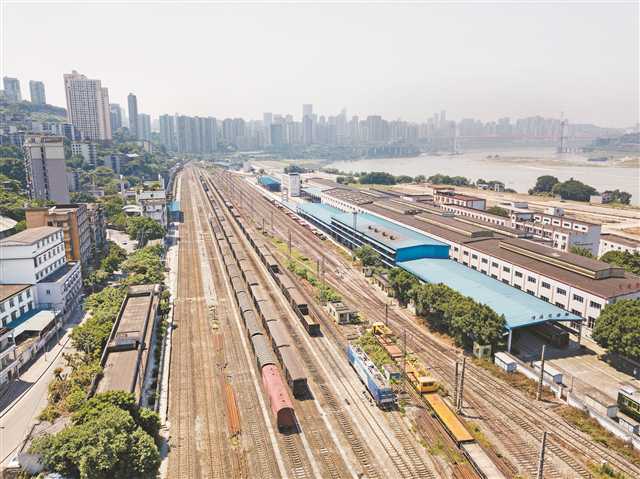与重庆南站一墙之隔的九龙坡码头,南临浩浩荡荡的长江。成渝铁路所需物资——经水路从鞍钢来的钢坯、从武汉来的火车蒸汽机车头,都在此登陆,沿着码头上约1公里的铁路支线,运往重庆南站,再分发、运送到铁路沿线各地。