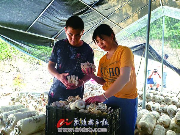 吴万容和丈夫在采摘平菇