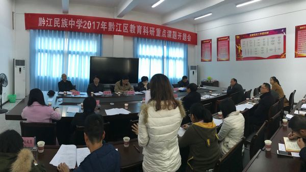 年前11月20日下午两点,民族中学2017年黔江区教育科研重点课题集体开题会在学校504会议室召开。由民族中学教研团队提出的《农村中学生物理实验能力培养研究》《新课程理念下高中本土英语词汇教学研究》和《综合实践活动培养学生创新意识和实践能力研究》三个课题同时开题,这是民族中学有史以来,同时申报课题研究最多的一次。