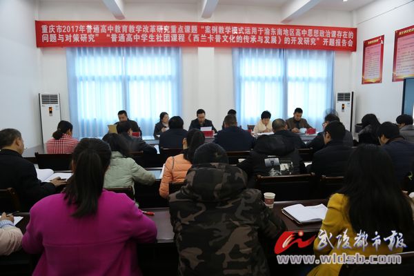 本报讯(记者 王巧西 文/图)3月6日,重庆市2017年普通高中教育教学改革研究重点课题“案例教学模式运用于渝东南地区高中思想政治课存在的问题与对策研究”与“普通高中学生社团课程《西南卡普文化的传承与发展》的开发研究”开题报告会(如图),在黔江区民族中学举行。