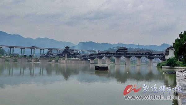 我曾不只一次走过风雨廊桥,但唯有这一次我没有以一个游客的身份去了解它。横跨于阿蓬江上的廊桥。桥身为实木结构,桥高三层,桥两侧有近百扇可自由开合的雕花木窗,桥内摆放着供行人休息的红漆长凳。廊桥长658米,宽5米,被中国廊桥协会授予“世界第一风雨廊桥”称号。