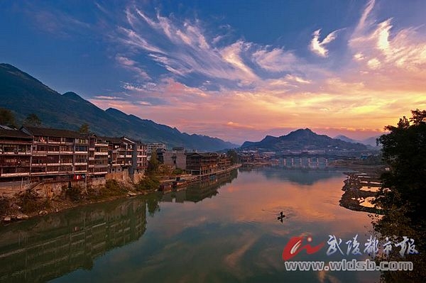 五月的阿蓬江明澈如洗翩翩朗朗,夕阳下,江边的濯水古镇犹如渡上了一层金纱。彼时远山如黛、廊桥如梦,我想这样的濯水绝对消受得起诗里“渔歌正唱蓬江韵,两阁三宫古色香。桥上笠翁皆醉倒,欣然夜景当苏杭”这样的描述。