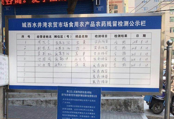 检测农产品公示栏。特约通讯员 李诗素 摄