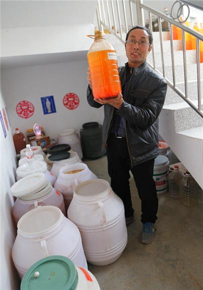 在余和容新建的小洋楼周围,笔者还发现,他房屋周围及室内一楼闲置的几间房间里,全放置着一排排的大塑料缸,打开一闻,一股醪糟的香气扑鼻而来。