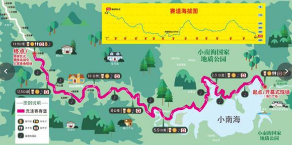 记者从发布会上获悉,本次活动将于12月15日至16日在黔江小南海举行,其中15日为跑客报到体验土家风情,16日上午9:30发令比赛,比赛线路串联风光秀丽的小南海、神秘原始的十三寨,全长13.982公里。