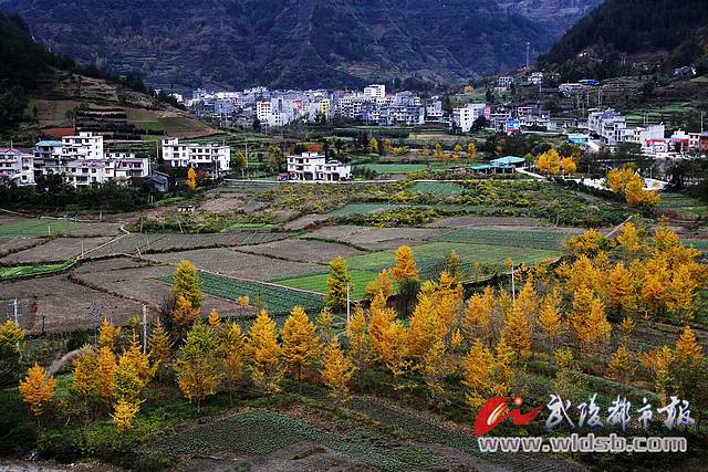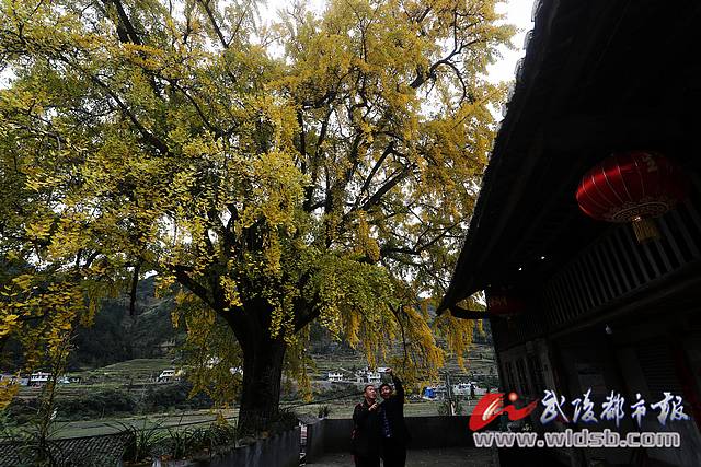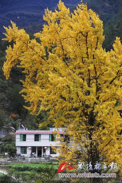这些银杏树掩映着两地的民居、村道、小河,把渝鄂边区的大山装点成一幅画卷,吸引了众多游客前来观赏。