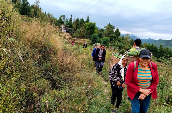 村民将采摘的瓜蒌搬运回基地加工厂房。特约通讯员 李诗素 摄