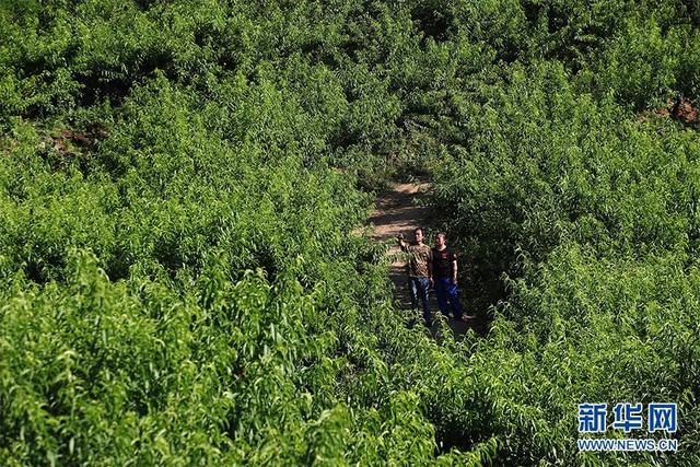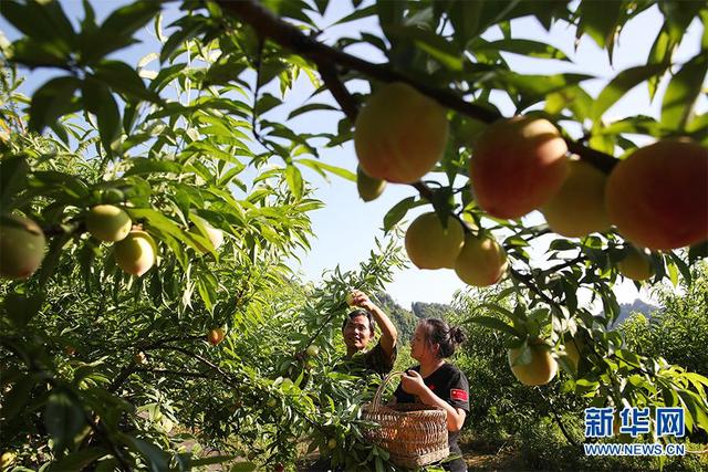 夏日殷殷,庞春武家的桃子熟了,200多亩桃林飘出丰收果香。新华网发(杨敏 摄)
