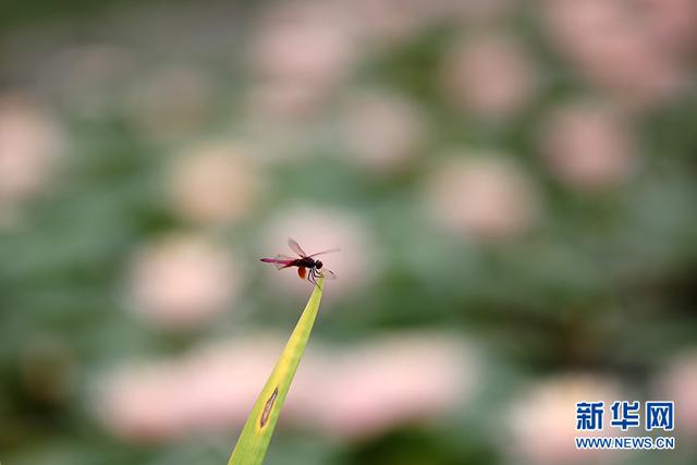 一只蜻蜓停在睡莲上。新华网发(杨敏 摄)