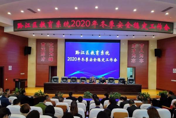 本报讯(记者 刘清春 文/图)近日,黔江区教育系统2020年冬季安全稳定工作会在黔江区育才中学召开,全区各中小学分管副校长、幼儿园园长及片区办公室主任共计170余人参加会议(如图)。
