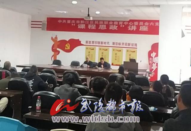 本报讯(记者 刘清春 文/图)日前,黔江区职教中心第六党支部在图书馆四楼党员活动室举办“课程思政”专题讲座。第六党支部党员、政治高级讲师刘凤琼作了题为《课程思政的时代要求与教学实施》专题讲座。