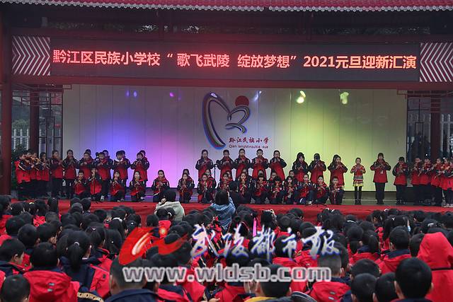 本报讯(记者 刘旭东 文/图)12月28日,民族小学校园内热闹非凡,学校4至6年级学生齐聚操场,举行“歌飞武陵 绽放梦想”2021元旦庆祝活动,共同分享了师生们精心准备的精彩表演。
