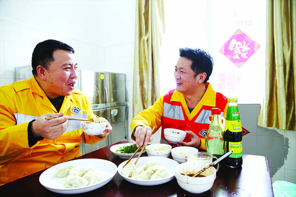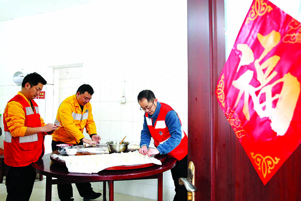 记者在渝怀铁路黔江石子坝工区看到,留守工区过年的3名线路工在挂灯笼,贴春联、福字,还包饺子吃。春节期间,他们要负责100多公里渝怀铁路线路的安全维护,保障列车安全通行。“每天都要在铁路上巡查, 发现问题要及时排除,为铁路畅通提供保障。”工长胡昌军说。