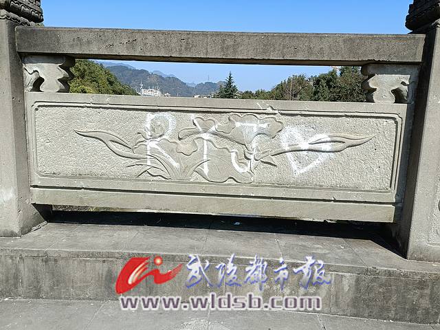本报热线79081234报道(记者 田丹 文/图)近日,热心黔城市民龚女士致电本报热线称:“这段时间盛黔桥的梅花开得格外美丽,吸引了不少市民前来打卡,但有的市民在桥栏杆上乱涂乱画,这种行为一点都不符合这里的美景。”