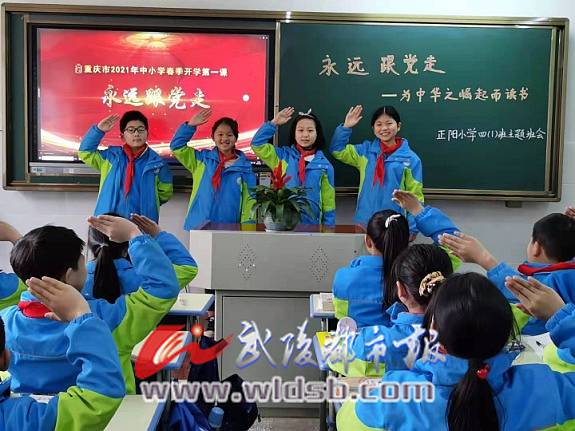 本报讯(通讯员 张世明 冯立明 文/图)3月1日,黔江区正阳中心小学校以观看《开学第一课》拉开了2021年春季学期的序幕(如图)。今年的《开学第一课》以“永远跟党走”为主题,要求同学们从小听党话,跟党走。