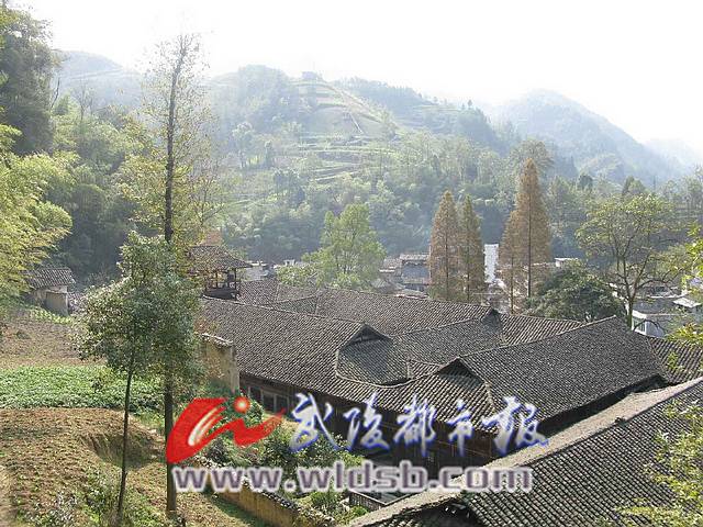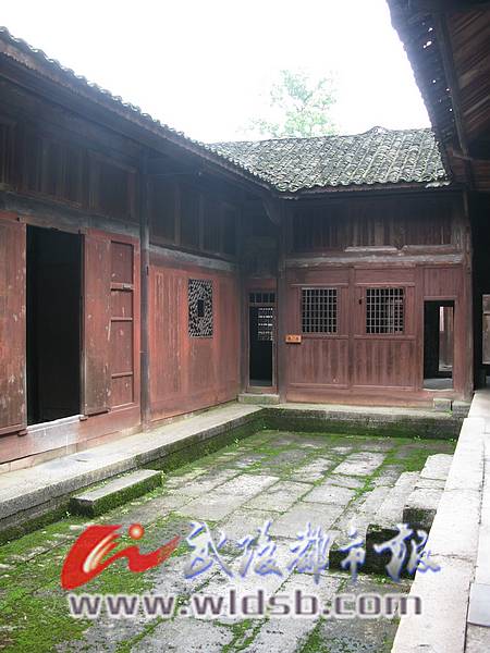 在武陵山区深处的黔江区黄溪镇黄桥社区南300米处,有一座远近闻名的市级文物保护单位——张氏民居。它始建于1911年,因原主人姓张而得名,坐东北向西南,占地5000余平方米,建筑面积3417平方米,房屋108间。民居由前厅、正厅、左右厢房、绣楼、碉楼、门楼、后花园、内外围墙、地下室、水牢、马厩、阶梯踏道、天井、水井、石拱桥、厕所等构成,形成了一个多功能的系统化建筑体系。主体建筑呈复四合院布局,两楼一底木结构单檐悬山式屋顶,穿斗式梁架,青瓦盖顶。前左右厢房配以当地土家族建筑的构筑物吊脚楼。主体建筑以5个小天井为组合要素,把整个院落分隔成5个小四合院,这种形式把四合院建筑模式推到了极致。