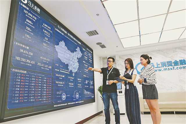 马上消费金融股份有限公司,大数据实时屏幕显示,每天在线提交申请的客户达10万人左右。记者 罗斌 摄/视觉重庆