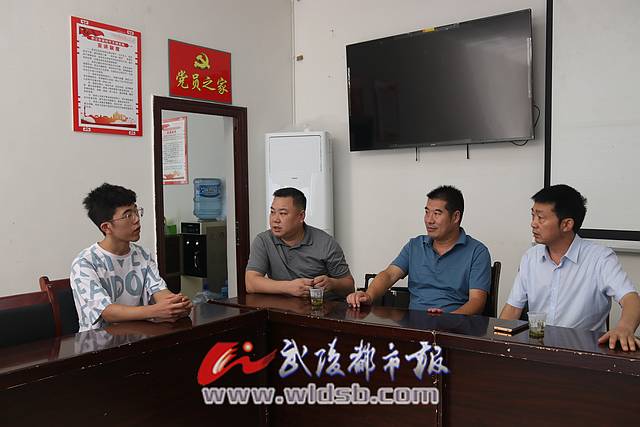 在太极镇政府人员陪同下,商会人员和胡洋(左一)交谈