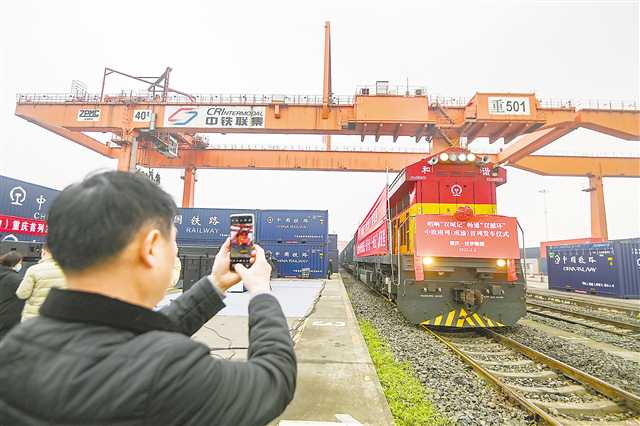 二○二一年一月一日,重庆团结村中心站,重庆、成都两地同时发出二○二一年中欧班列(成渝)号第一趟列车。记者 龙帆 摄\视觉重庆