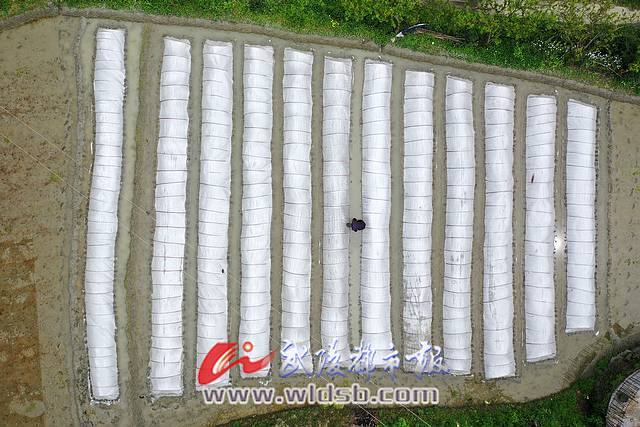 阿蓬江镇龙田社区的美垦农业有限公司种植基地,村民在覆盖种植西瓜的农膜