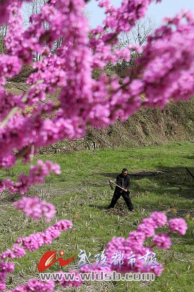 鹅池镇 社溪村村民在紫荆花掩映的地里劳作