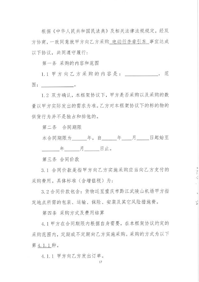 重庆市黔江武陵山机场有限责任公司电动行李牵引车采购项目比选文件(第二次)