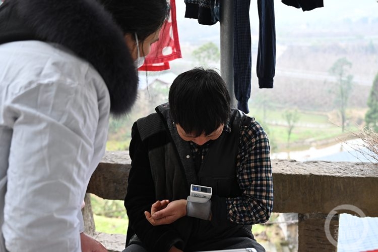 穿过三个高速涵洞,再爬上一段陡峭的石梯路,就到了伍从民的家。姜奉娟告诉我们,对这些重点人群患者,每周至少3次电话回访,一有问题就要去看,“这关系到他们的生命健康问题”。