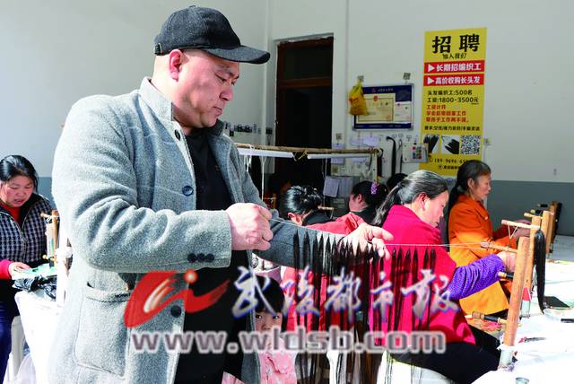 “编织假发是个轻巧活,只要眼力好、坐得住,都干得了。我们还有一个工人是残疾人,她把原材料(头发)领回去,坐在轮椅上编。”近日,记者走进黔江区黄溪镇小学附近的一间民房里,一中年男子在检验完工人编织的假发时说。