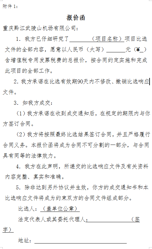 5.2 递交地址:重庆黔江武陵山机场有限公司综合楼208室
