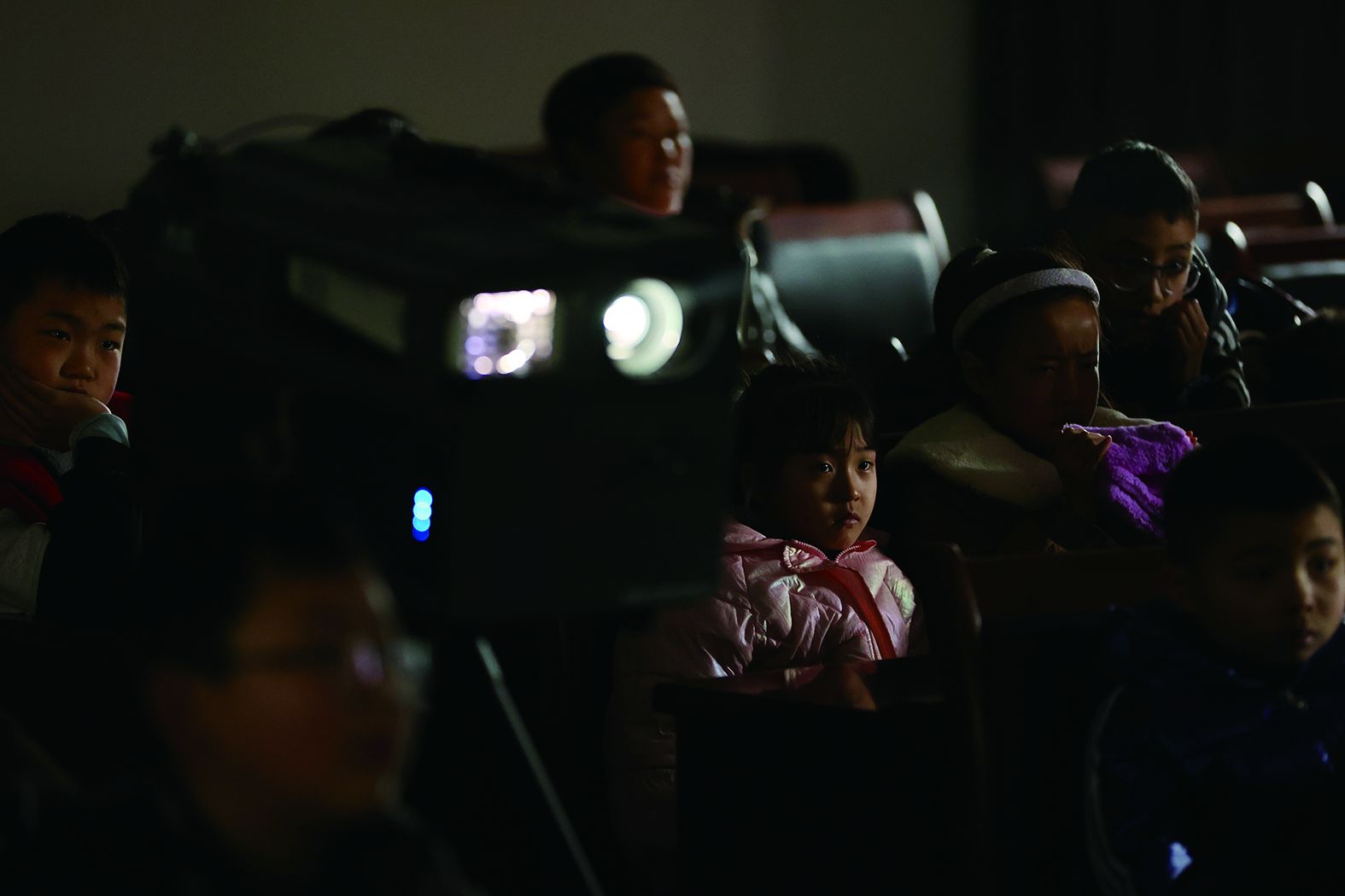 ▲小朋友看完电影后在参加谈观后感时争相发言