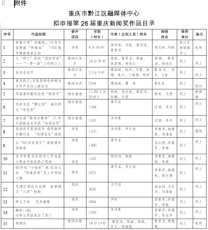 附件:重庆市黔江区融媒体中心拟申报第26重庆新闻奖作品目录