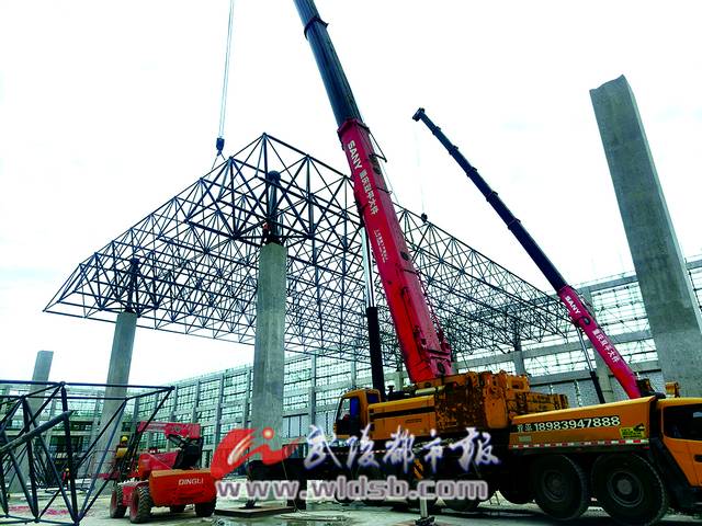 “本次钢结构网架重603.26吨、投影面积1.34万平方米,这么大体量的施工在黔江区尚属首例,具有创新引路的作用。”负责此次钢结构网架吊装的项目总工程师史志伟说。