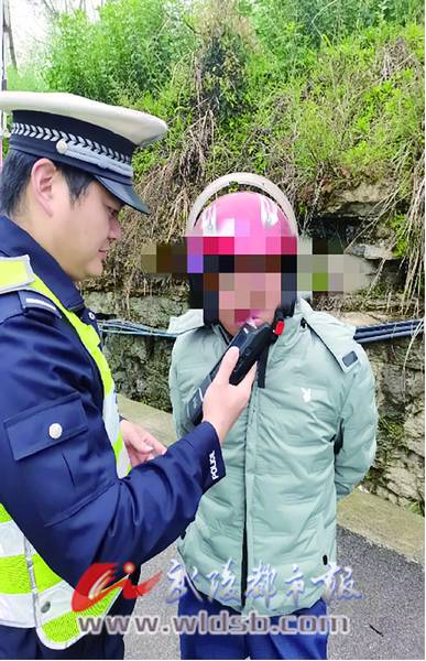 本报讯(通讯员 龚娅 文/图)日前,黔江区公安局交巡警支队公巡二大队接到群众举报,一辆摩托车在黑溪镇疑似酒后驾车。接到举报后,公巡二大队立即组织警力查找,后在黑溪镇黔石路成功将涉嫌酒驾的男子拦截。经现场对该驾驶人王某某进行呼气酒精检测(如图),结果为61mg/100ml,属于饮酒后驾驶摩托车。经进一步核查,该摩托车还未按照规定定期进行安全技术检验。