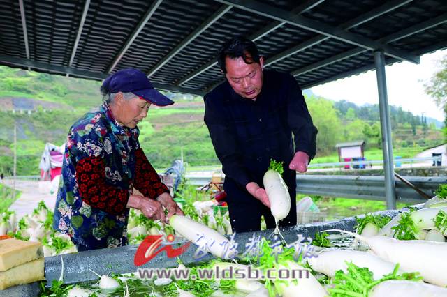 “你们把这块地的萝卜上完车后,赶快去突击清洗装袋,下午要发一车到万州。”近日,走进黔江区白石镇凤山村2组的蔬菜基地,基地负责人彭南海正招呼着在田间装车的村民。