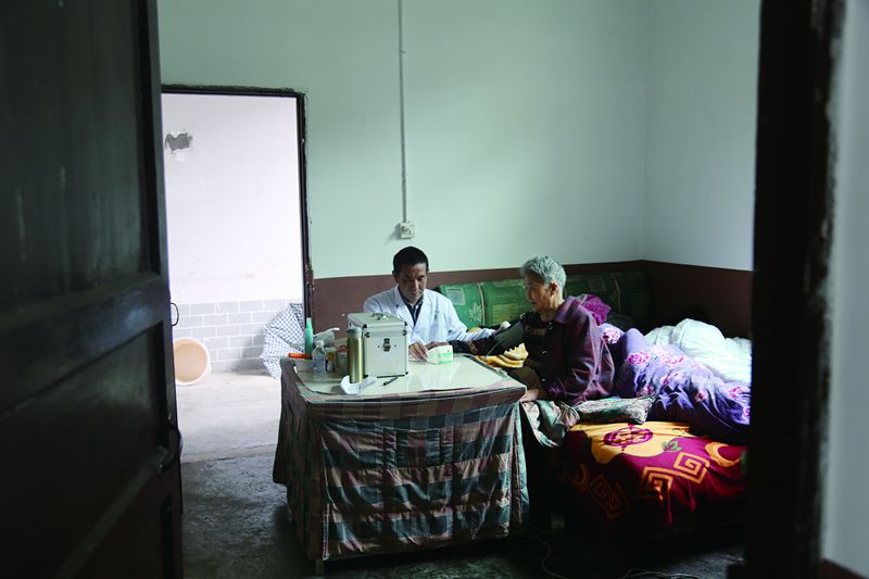 记者了解到,因其妻子常年在外务工养家,有视力残疾的粟正前经常都是一个人独居。最近,他总觉得自己肚子不太舒服,所以正准备给钟瑞锦讲述情况。给粟正前做完诊疗,钟瑞锦又拿出血压计给他测起了血压。
