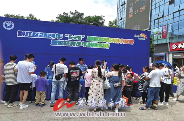 本报讯(记者 黄敏 文/图)为深化全民毒品预防教育,6月25日,在第37个“6·26”国际禁毒日来临之际,黔江区禁毒委在大十字购物广场开展2024年“6·26国际禁毒日”集中宣传暨“防范青少年药物滥用”主题宣传活动。