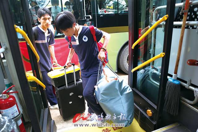 一大早,学生们早已打包好了行李。大家拖着行李箱、提着课本、扛着编织袋……同学们忙得热火朝天,一趟趟地往来于寝室与车辆之间,将各自的行李一件件搬上客车。