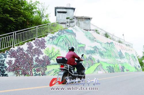 “这幅画主要围绕濯水古镇、神龟峡、小南海、土家十三寨这些元素进行创作,把这些元素通过山水连接城市,全方位体现土家族苗族民风民俗还有山水景点。这条路通往神龟峡景区,让游客还没进入景区就能感受到黔江山水风光。”墙绘设计师(创作人)廖朝文表示,整体墙绘依据“顺山势、借山景”“显山露水”的建设理念,凸显农村公路田野、山野、乡野的地域旅游特色,切实打造“一路一景”“路景各异”生态旅游特色通廊。
