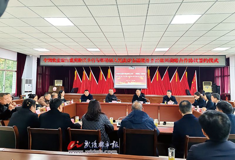 本报讯(记者 田丹 文/图)11月27日,中国农业银行重庆黔江分行与黔江区邻鄂镇人民政府签署了金融服务乡村振兴战略合作协议。活动旨在用细、用足、用优金融系统优惠政策,全面推动乡村振兴战略实施,进一步推动邻鄂镇经济社会实现更高质量发展。