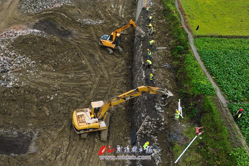 12月7日,工人在黔江区段溪河流综合治理工程中塘镇胜利村段施工。入冬以来,黔江区细沙河、段溪河、中井河、太极河等河流综合治理工程加紧施工,切实提高河道防洪保安能力,以及夺取明年粮食丰收,助力乡村振兴夯实水利基础。