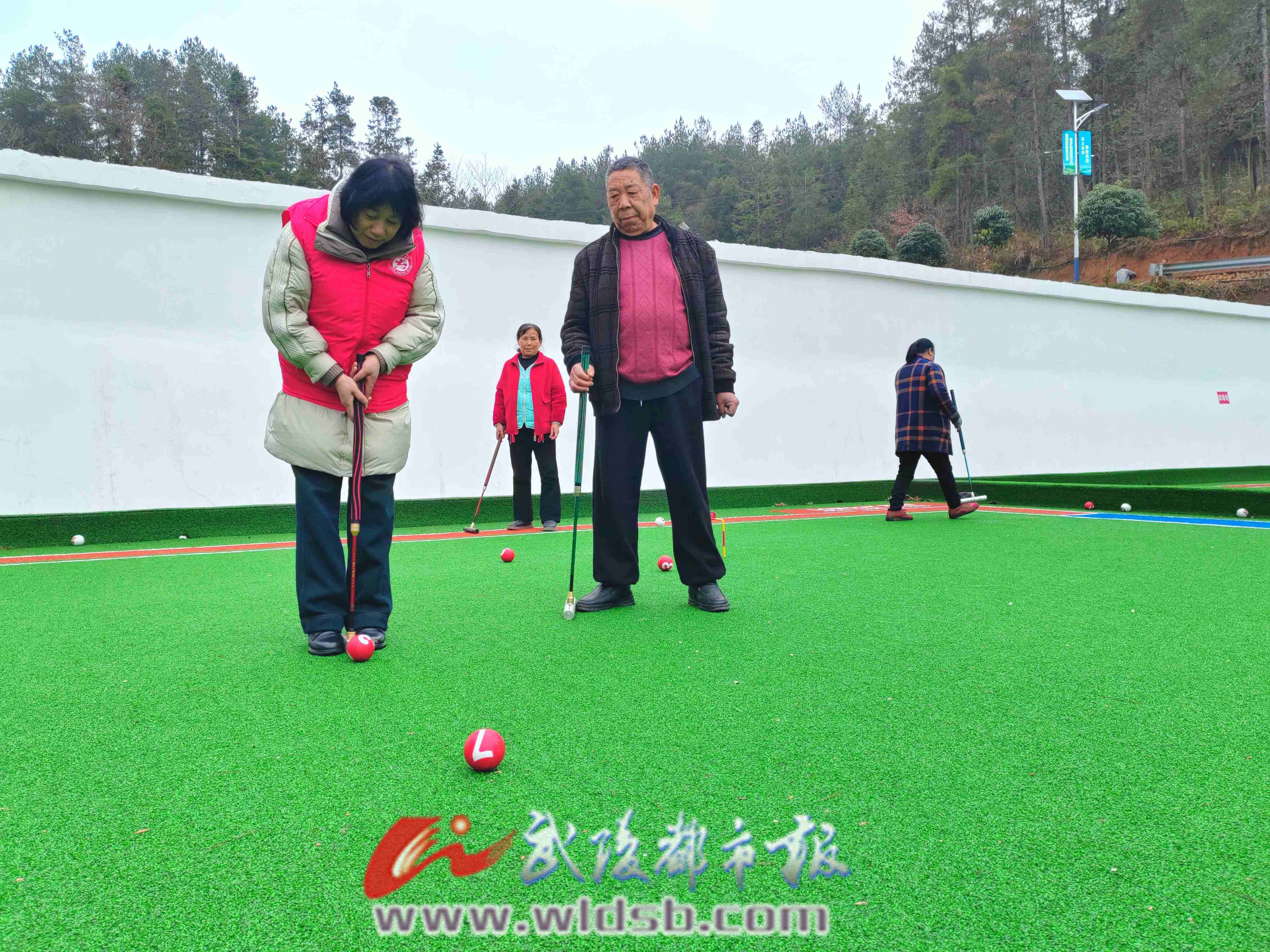 本报讯(通讯员 曹树华 刘静萌 文/图)“打门球时首先身体要站直,球杆与肚脐平齐,握球杆时双手左下右上,球槌落地在双脚平行的空隙中,通过三点一线瞄准前方的球,然后球槌擦地用力将球击打出去……”近日,黔江区水市镇开展门球公益培训活动,10名志愿者担任“银龄教练”,为当地50岁以上老人定制门球课程。