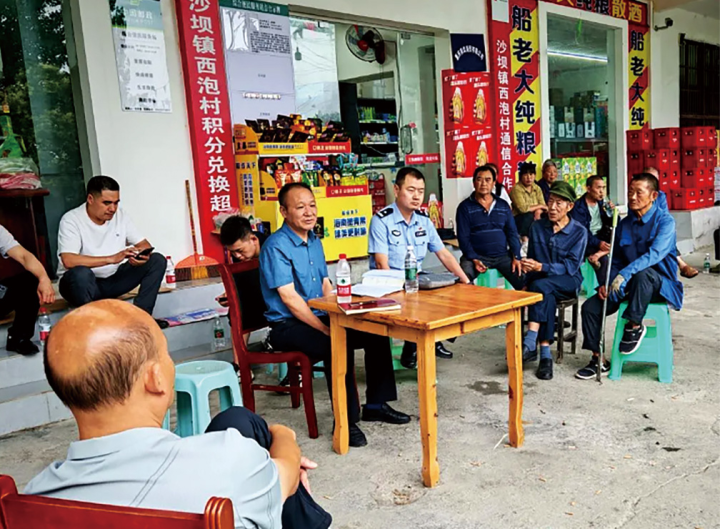 本报讯(记者 田丹 文/图)近日,黔江区沙坝镇新时代文明实践所组织辖区派出所深入各村(社区),以“小板凳”微宣讲的形式宣传防范电信诈骗知识、交通安全知识、防汛相关知识、惠民政策等。