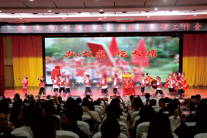 本报讯(记者 黄敏 文/图)9月26日,重庆市2025年秋季学前教育教研工作会暨精准教研赋能学前课程高质量发展现场研讨活动在黔江举行。会议通过现场观摩、课例展示、专家指导、经验交流、专家讲座,共享教育智慧,碰撞、思考、探索如何通过教与学的变革深研儿童有意义学习,助推学前教育高质量发展。