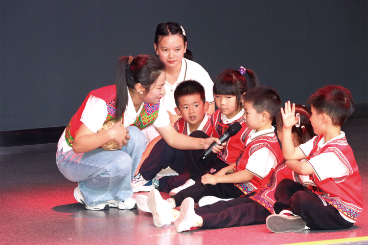 在幼儿课例展示环节,黔江区正阳幼儿园、黔江区实验幼儿园、黔江区机关幼儿园分别为大家进行了户外体育活动展示《乐享丰收韵——玩转土家竹铃球》,语言教育活动展示《家乡故事大家讲》,自主游戏活动展示《濯水古镇我来建》。各项活动将本土文化与幼儿教育深度融合,为参会者提供可借鉴的实践样本。