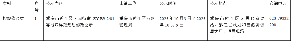 重庆市黔江区规划和自然资源局城乡规划公告(控规修改类)