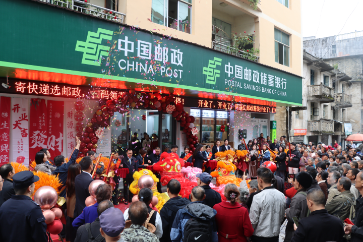 当日,营业所门前花篮锦簇、人头攒动,洋溢着喜庆热烈的气氛。许多闻讯而来的社区居民早早就在门口等候,争相体验新环境、新服务。阿蓬江镇党委政府代表、黔江邮政相关负责人共同出席了简洁而热烈的开业仪式。现场不但有精彩的狮舞表演,还开展了幸运抽奖、业务体验有礼等互动活动,让居民们在办理业务的同时,感受到了邮政服务的温度与热情。